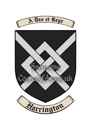 Other versions of the Harrington surname shield (coat of arms, family crest) may be available from us here.